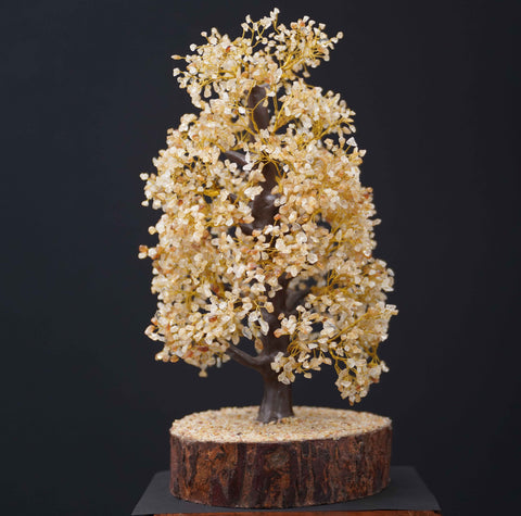 Clear Quartz Crystal Tree with Golden Potli (Free 3 Sets of Chinese Coins)