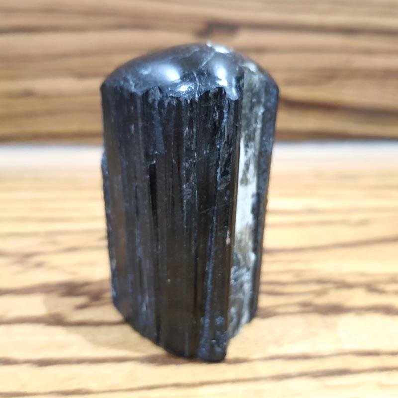 This substantial Polished Black Tourmaline crystal is renowned for its ability to deflect negative energies and provide strong energetic grounding. With a smooth, glossy finish, it serves as both a powerful crystal and a striking display piece.