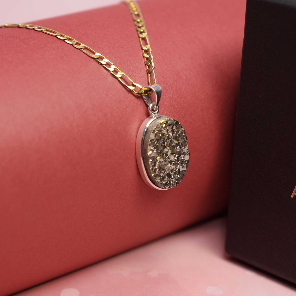 Bold and radiant, this 1-inch Pyrite Pendant is a symbol of confidence, protection, and prosperity.