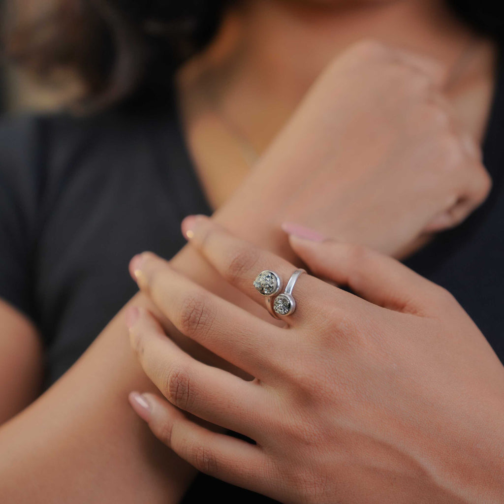 This beautifully crafted Pyrite Ring, set in 95% pure silver, radiates strength, confidence, and abundance. Known as a crystal of luck and protection, Pyrite helps shield your energy while empowering your goals.