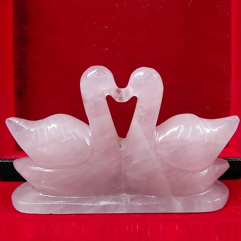 Rose Quartz Mandarin Duck is a symbol of love, fidelity, and harmony. Known for its gentle healing energy, Rose Quartz helps to open the heart and foster deep emotional healing, while the Mandarin Duck is a traditional symbol of marital happiness and love in Feng Shui.