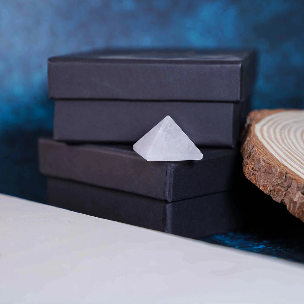 This 1-inch Clear Quartz Pyramid is a powerful energy tool known for amplifying intentions and bringing clarity. Its precise pyramid shape helps focus and direct energy efficiently.